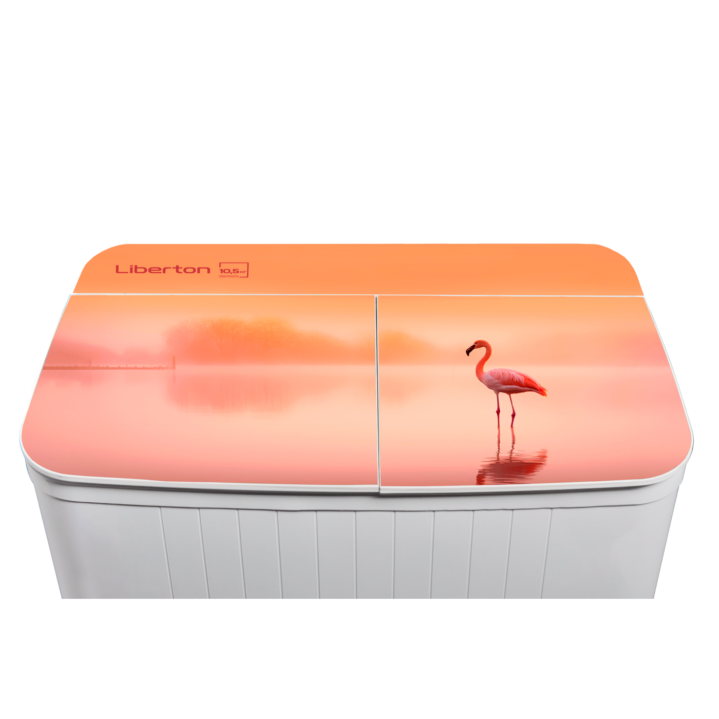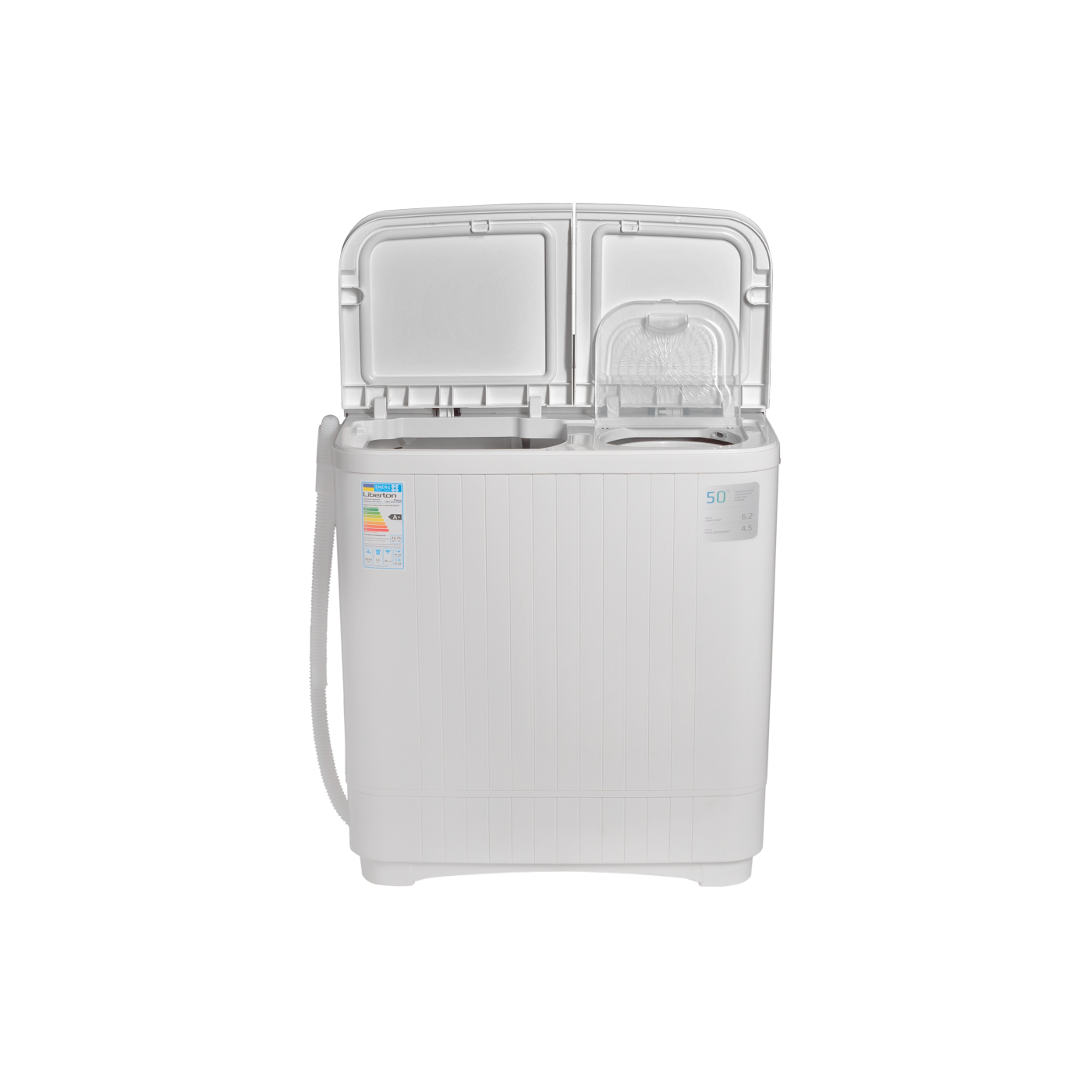 Loading: 10.5 kg; Power: 460 W; Type: semi-automatic, two-tank; Operating modes: delicate wash, standard wash, drain; Timer: 15 min; Pump for pumping out water; Centrifuge; Energy class: A; Noise level: 54 dB; Cover material: printed glass; Case material: plastic; Product size: 81.5x47x95 cm; White color.