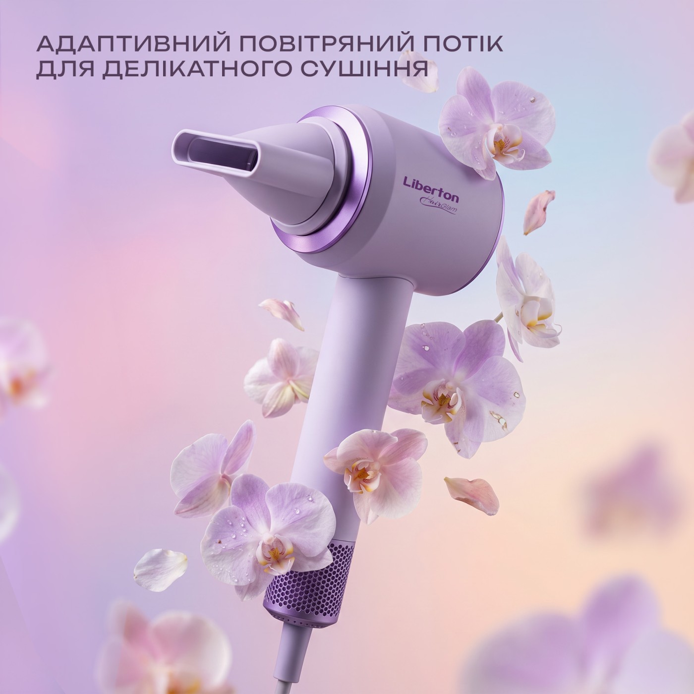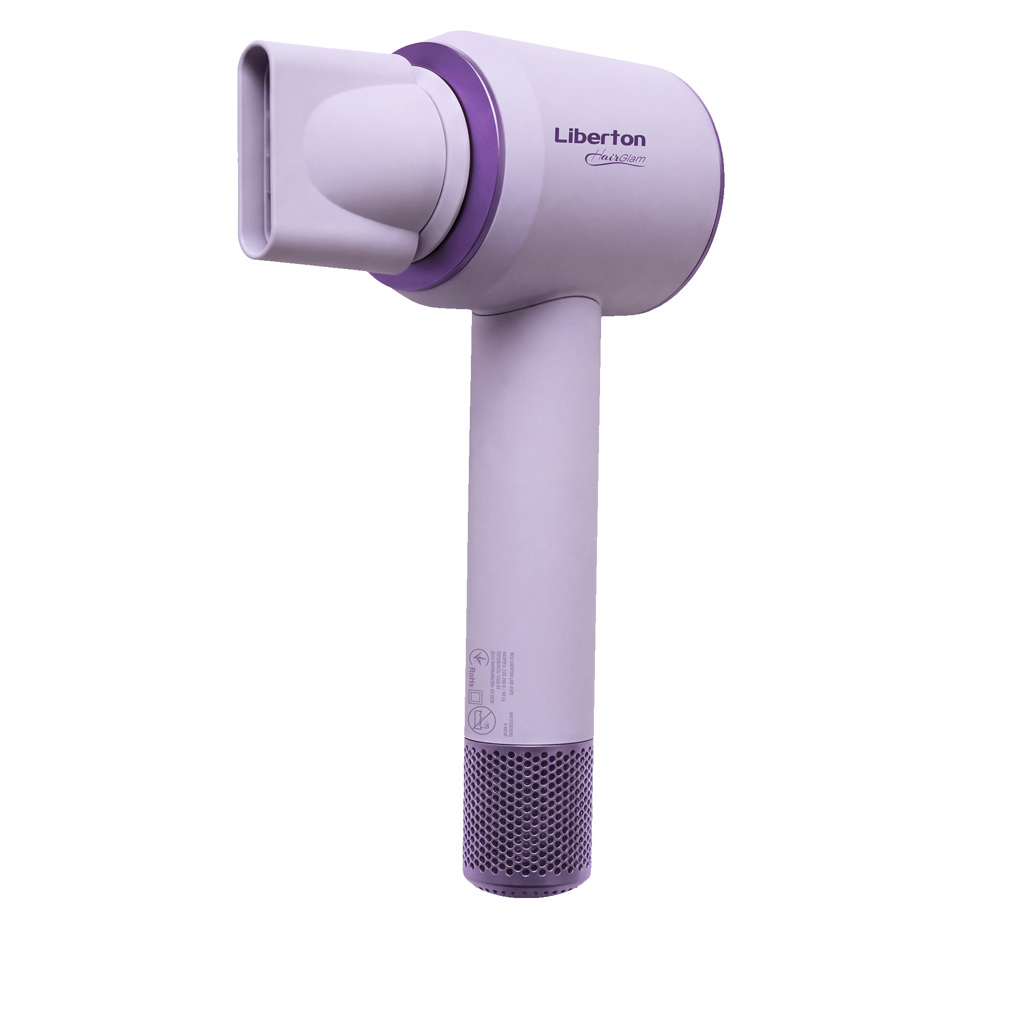 Type: standard; Motor type: BLDC; Power: 1300 W; Number of speed settings: 3; Number of temperature settings: 4; Number of attachments included: 1; Attachment: concentrator; Cool air function: yes; Features: magnetic attachment, overheat protection; Cord length: 2.0 m; Body material: plastic; Product dimensions (W×H×D): 6.5×28×7.5 cm; Color: lavender.