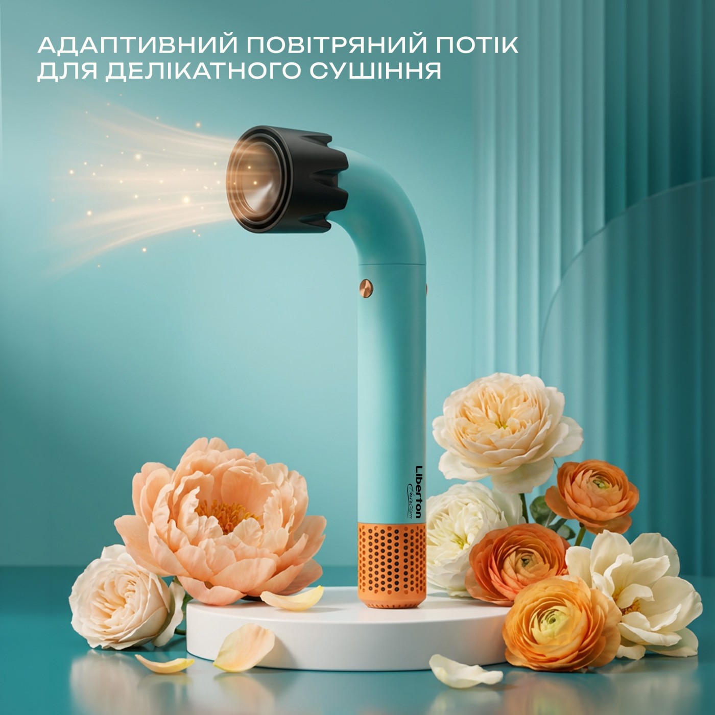 Type: standard; Motor type: BLDC; Power: 1200 W; Number of speed settings: 3; Number of temperature settings: 4; Number of attachments included: 3; Attachments: concentrator, diffuser, gentle drying nozzle; Cool air function: yes; Features: self-cleaning function, magnetic attachments, overheat protection; Cord length: 2.0 m; Body material: plastic; Product dimensions (W×H×D): 8 × 29 × 4 cm; Color: turquoise.