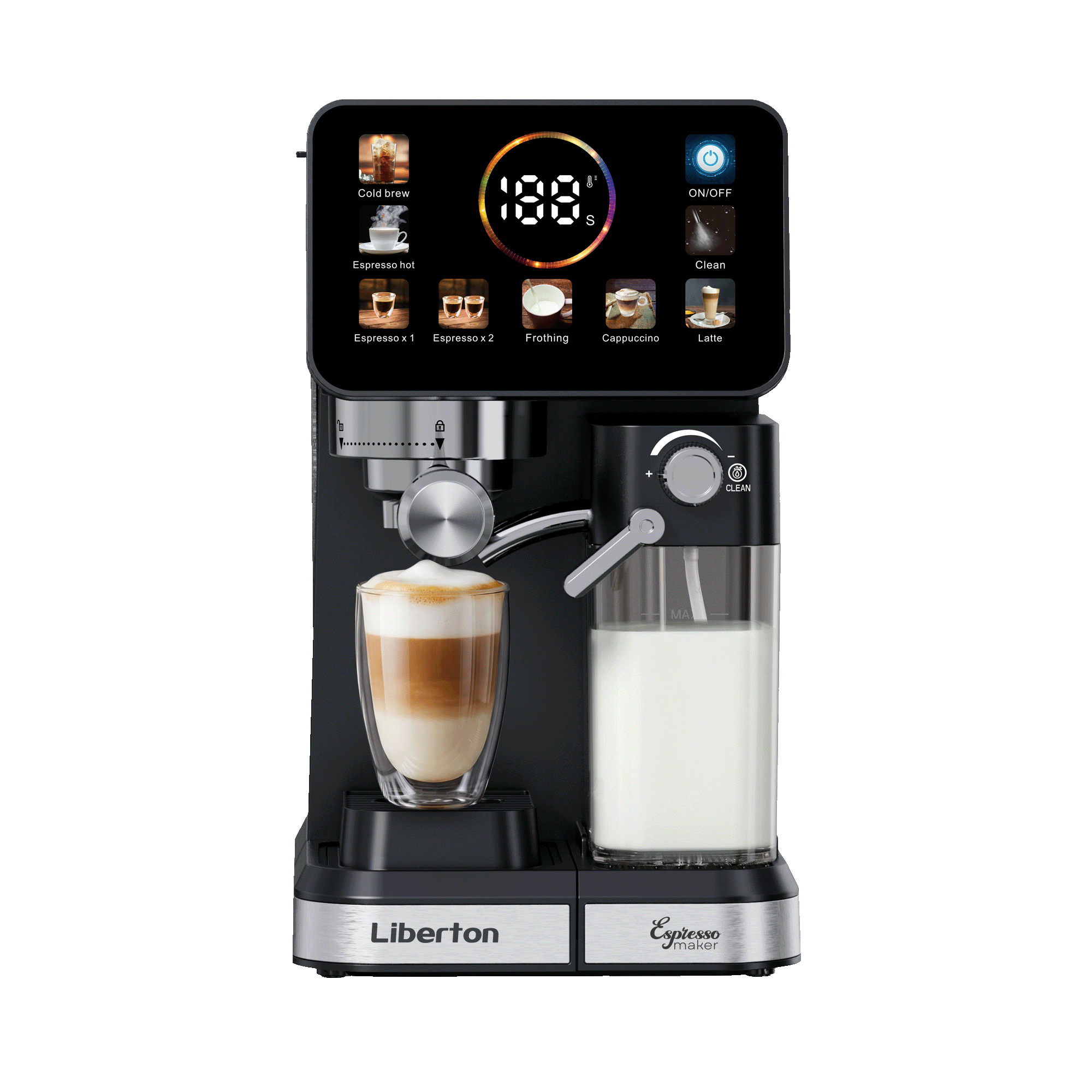 panarello steam wand, preparation of milk-based drinks, cappuccino and latte (automatic mode), cold espresso
