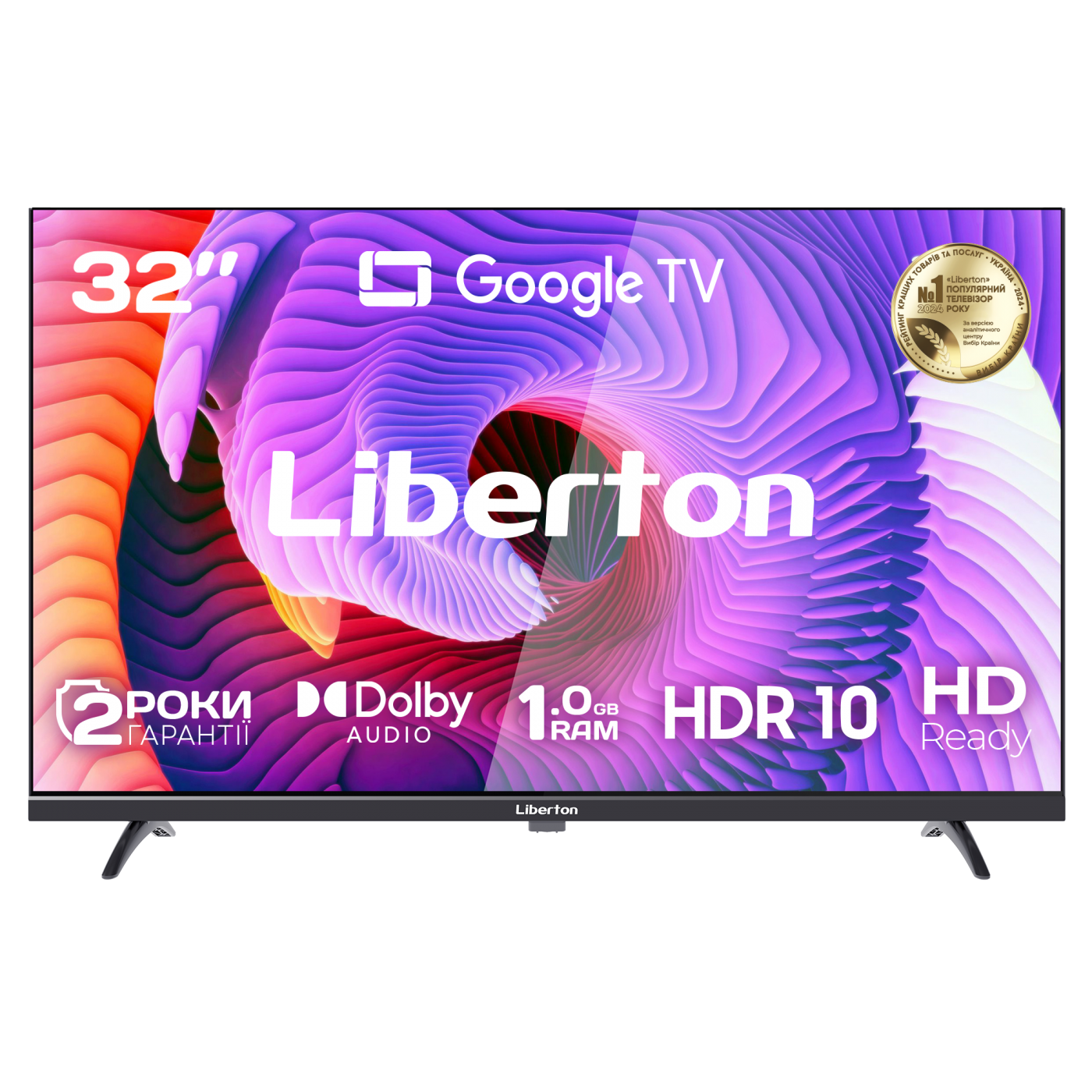 Діагональ: 32" (81 см); Корпус: безрамковий; Роздільна здатність: 1366х768 пікс. (HD ready); Операційна система: GOOGLE TV; Версія: 5.0 (ОФІЦІЙНА); Технології: HDR 10, Dolby Audio, Dolby Digital Plus; Оперативна пам'ять: 1 Гб; Внутрішня пам'ять: 8 Гб; Тюнер: DVB-T/C/T2; Кут огляду : 178 град.; Частота: 60 Гц; Входи: антенний (RF), Ethernet (RJ45), USB, HDMI, композитний A/V; Виходи: навушники, оптичний; Потужність звуку: 12 Вт; Центральна ніжка; Кріплення VESA: 200х200 мм; Голосовий пульт; колір: чорний.