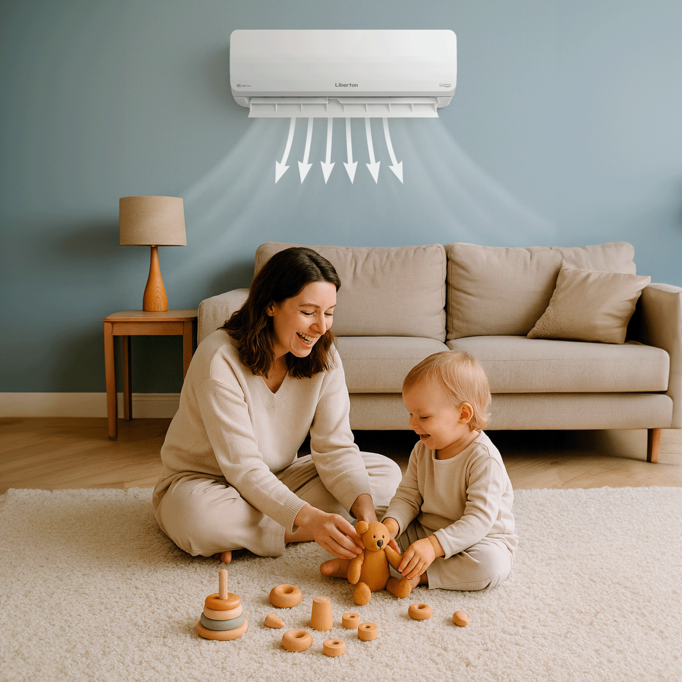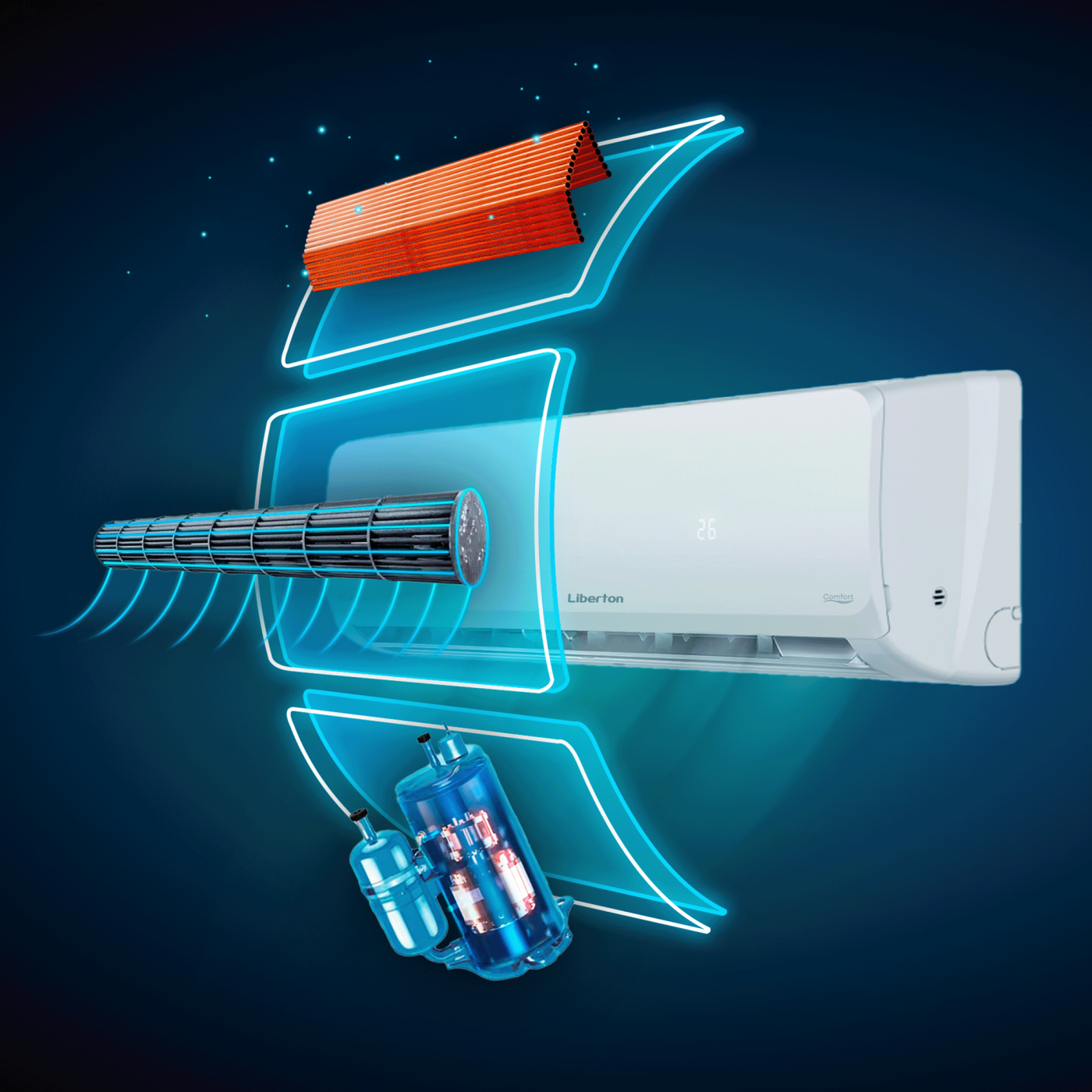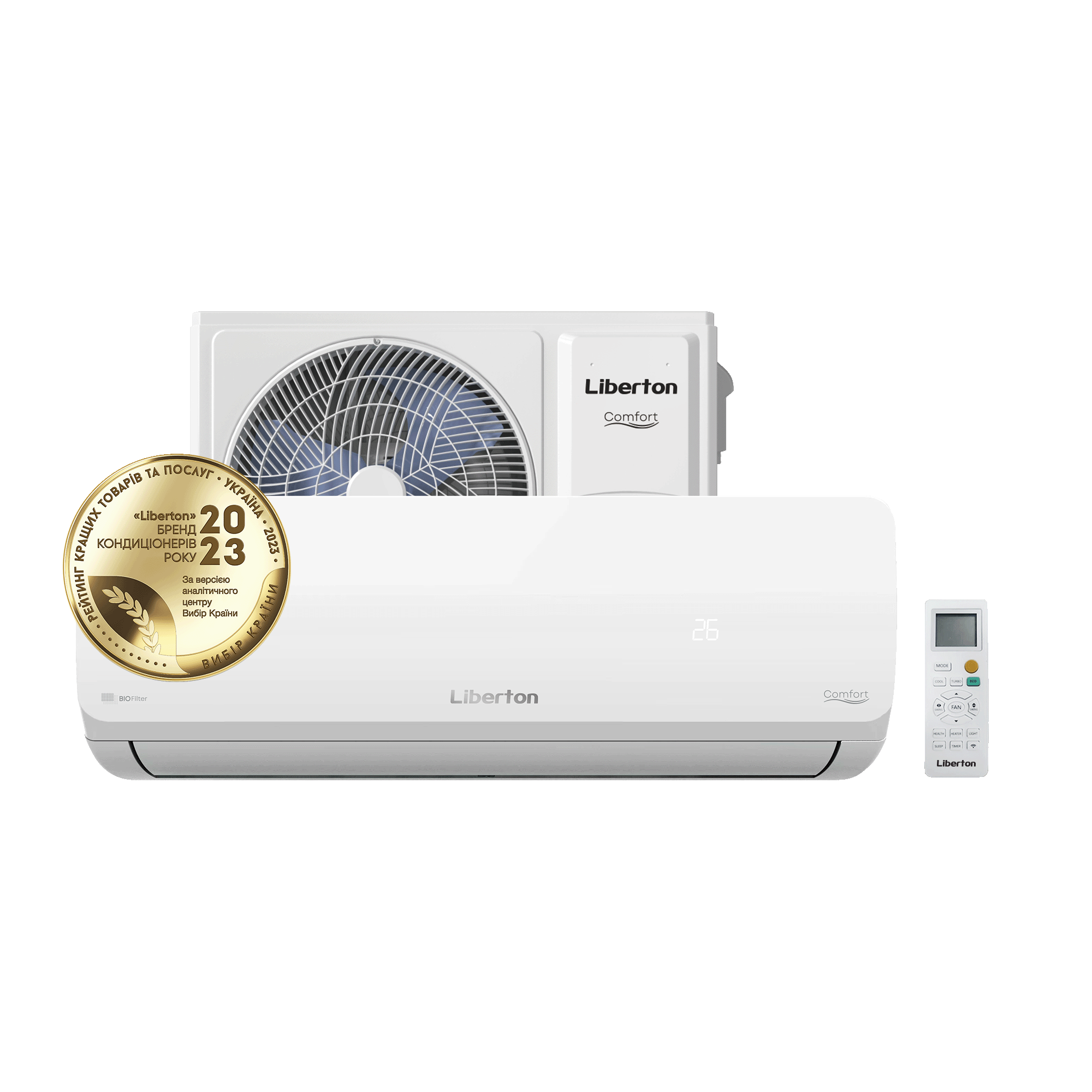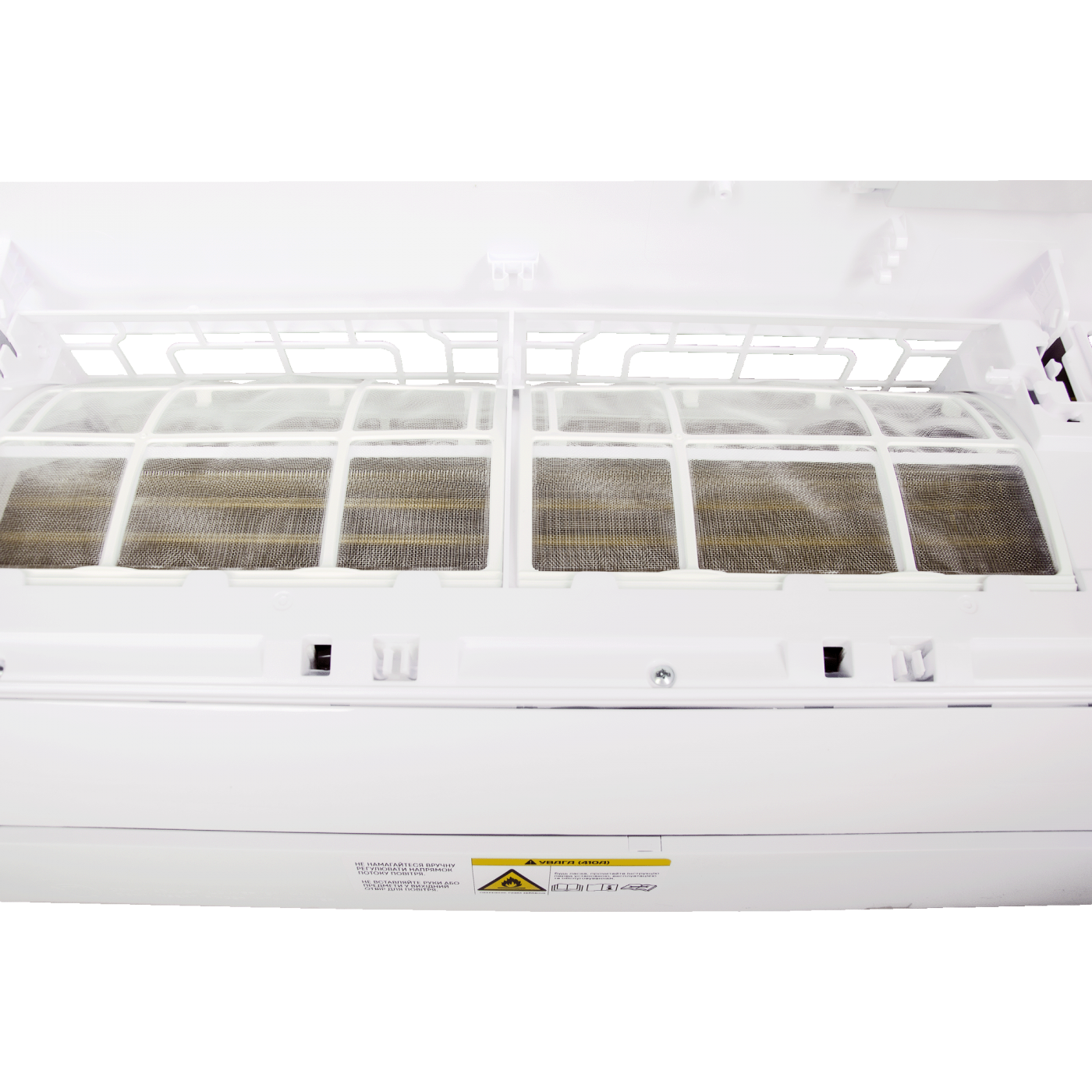 Type: split system; Compressor type: standard; Cooling/heating area: 25 m2; Cooling/heating capacity: 2100/2100 W; Power consumption: 900/900 W; Modes: auto, sleep, eco, air dehumidification, ventilation; Antibacterial filter; Hidden display; Timer; Refrigerant: R410A; Color: white.