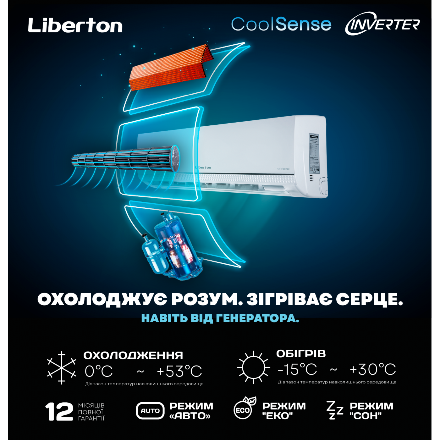 Type: split system; Compressor type: inverter; Cooling/heating area: 30 m2; Cooling/heating capacity: 2640/2780 W; Power consumption: 820/770 W; Modes: auto, sleep, eco, air dehumidification, ventilation; Hidden display; Antibacterial filter; Timer; Refrigerant: R32; Color: white.