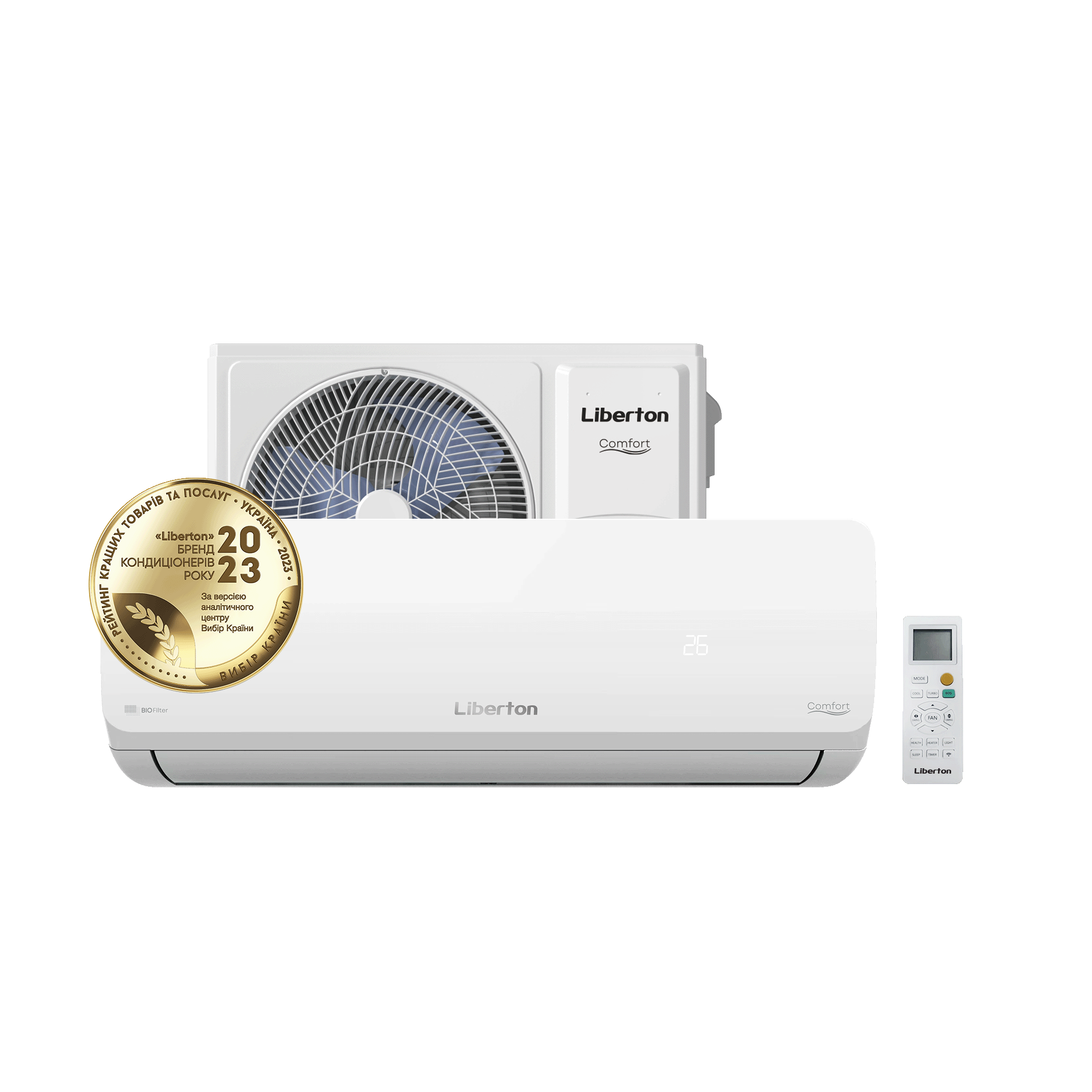 Type: split system; Compressor type: standard; Cooling/heating area: 30 m2; Cooling/heating capacity: 2500/2500 W; Power consumption: 900/900 W; Modes: auto, sleep, eco, air dehumidification, ventilation; Antibacterial filter; Hidden display; Timer; Refrigerant: R410A; Color: white.