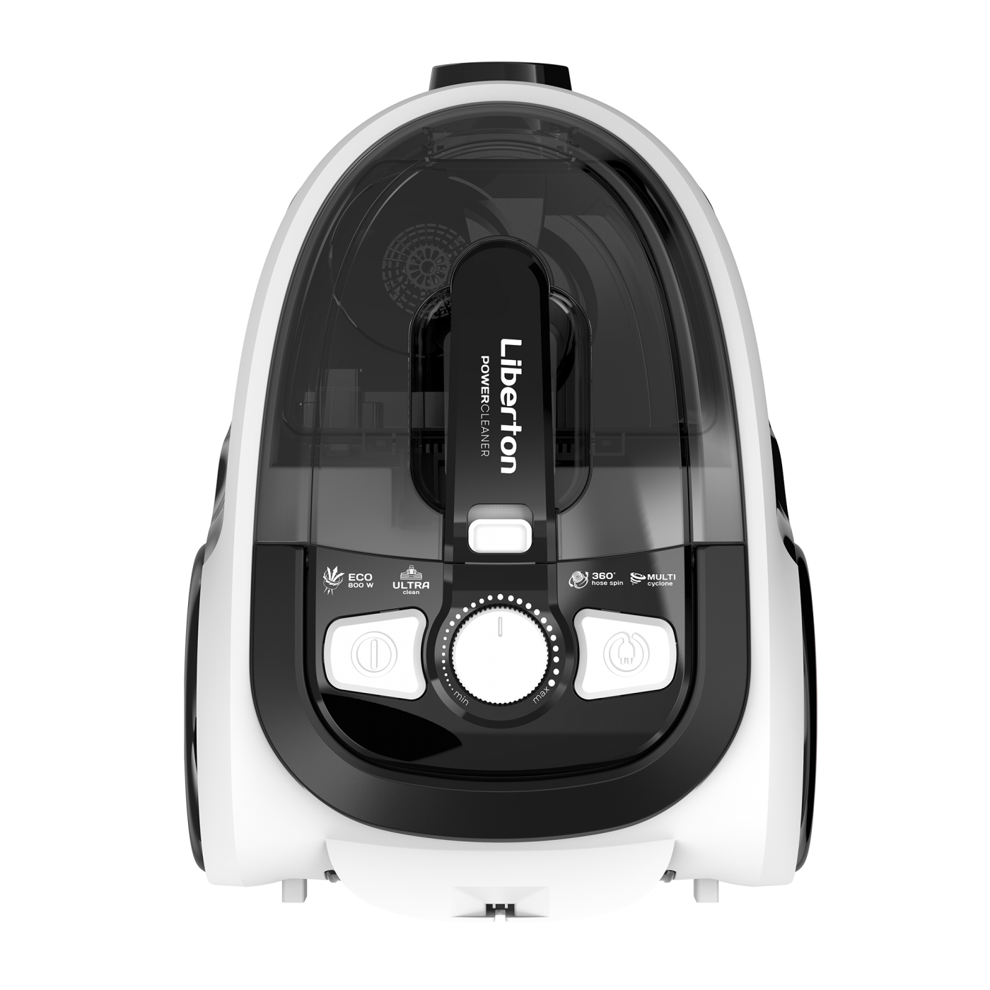 Power: 800 W; Dust container volume: 2.5 l; Complete set: telescopic chrome-plated tube, floor / carpet / crevice nozzles, 5. m cord; Filter: HEPA, HEPA; Options: hose rotation by 360 degrees, power regulator; Product size: 28х22,5х38 cm; Color: black + white.
