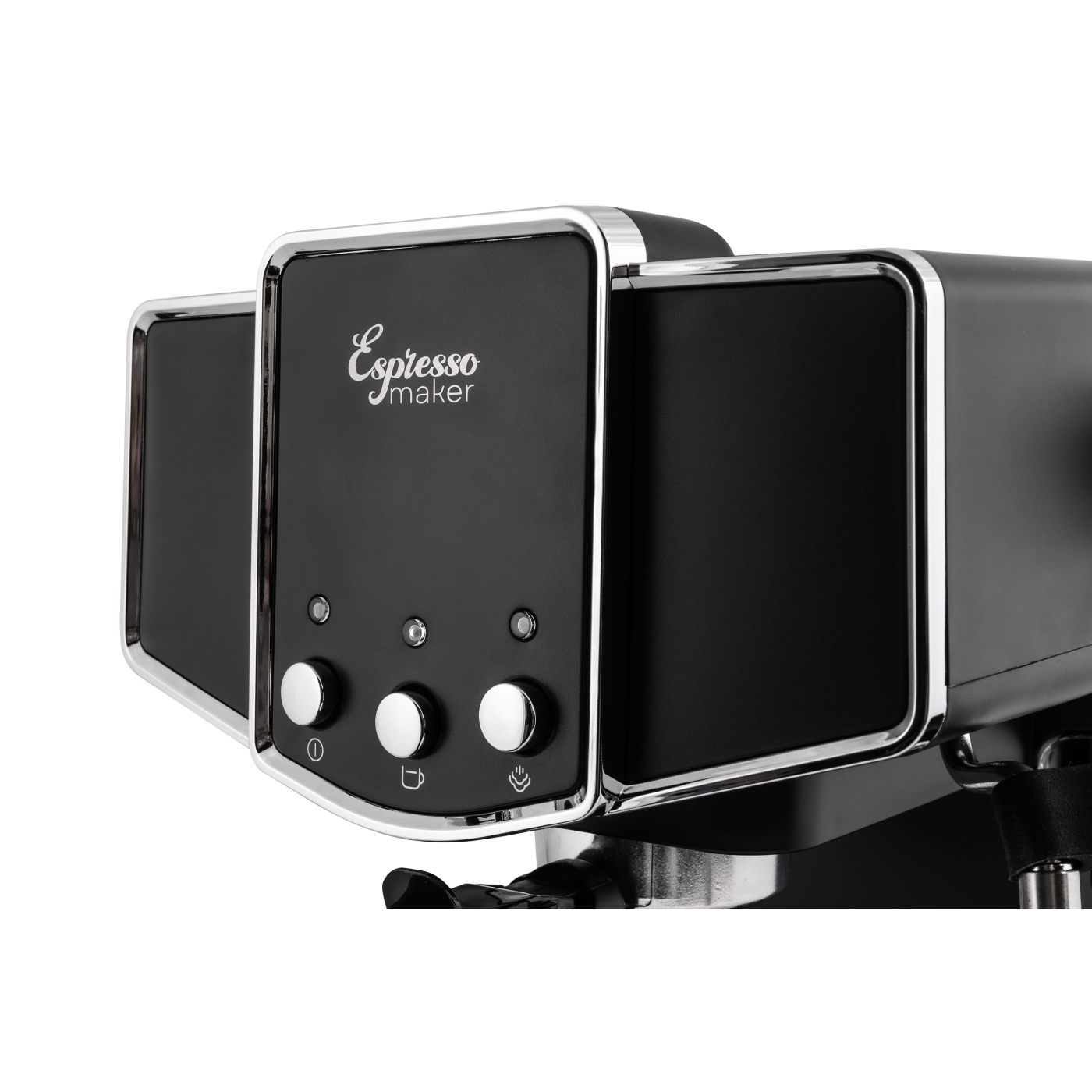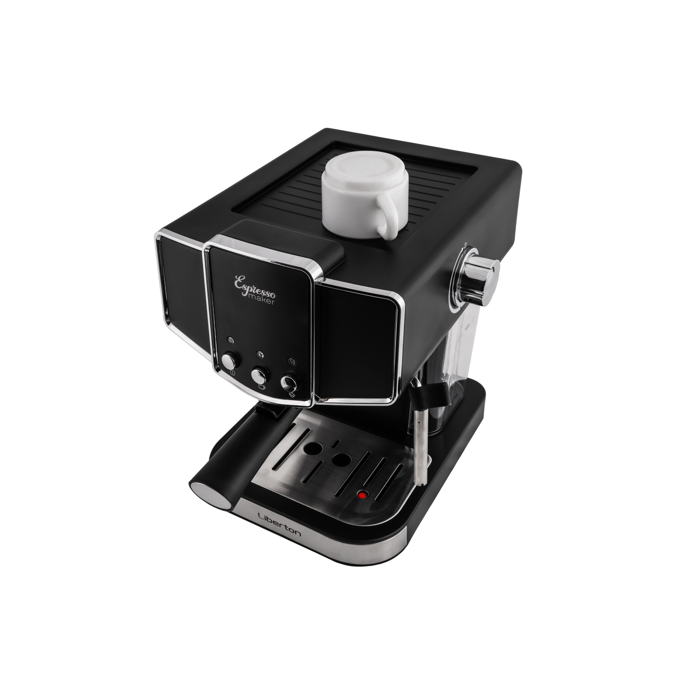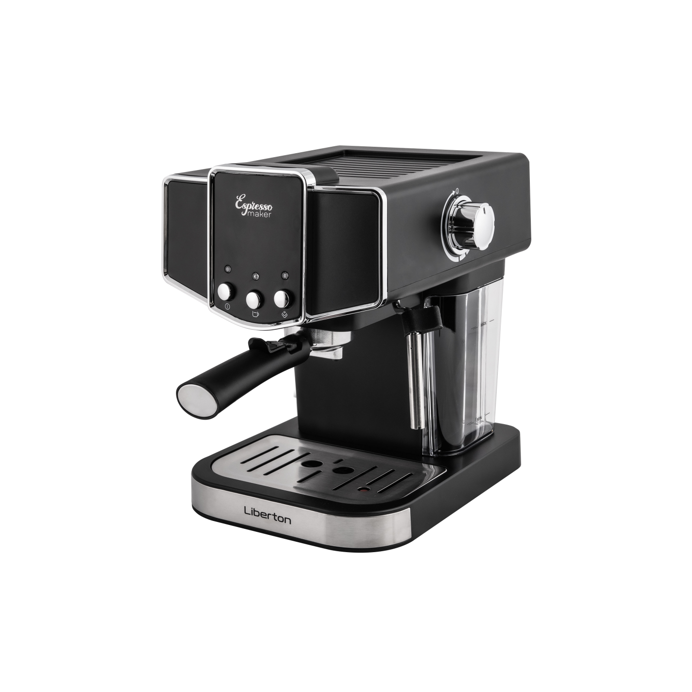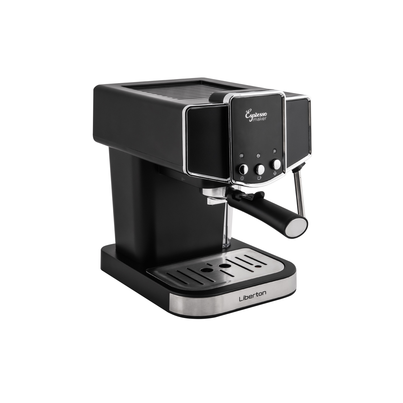 Coffee maker type: horn (espresso); Type: semi-automatic; Power: 950 W; Pressure: 15 bar; Control type: mechanical; Water tank capacity: 1.2 l; Coffee type: ground; Features: pannarello nozzle, manual cappuccino maker, adjustable steam, hot water, simultaneous preparation of two cups of coffee, removable drip tray, coffee pot heating, overheating protection, overpressure protection, power-on indicator, water level indicator, measuring spoon-tamper; Body material: plastic + stainless steel; Product size: 23,1х29,3х27,6 cm; Color: black + silver.
