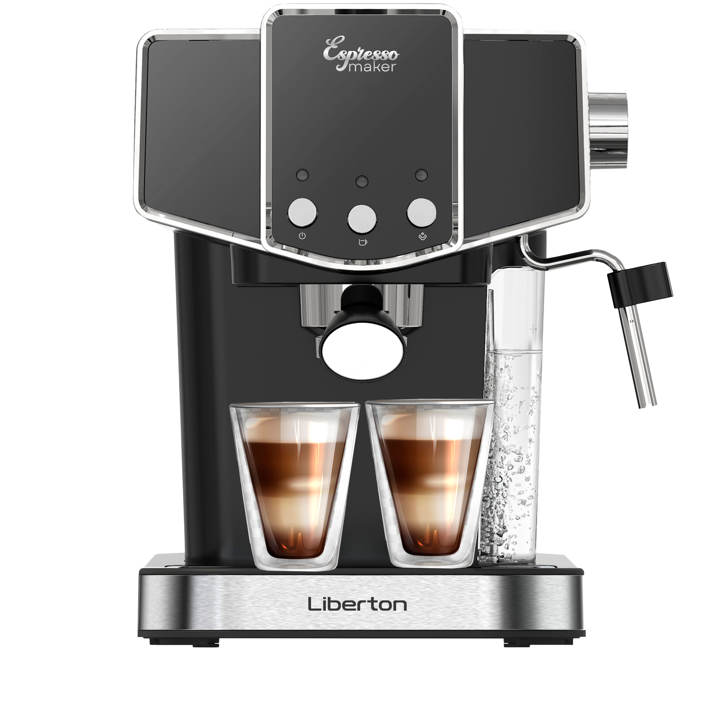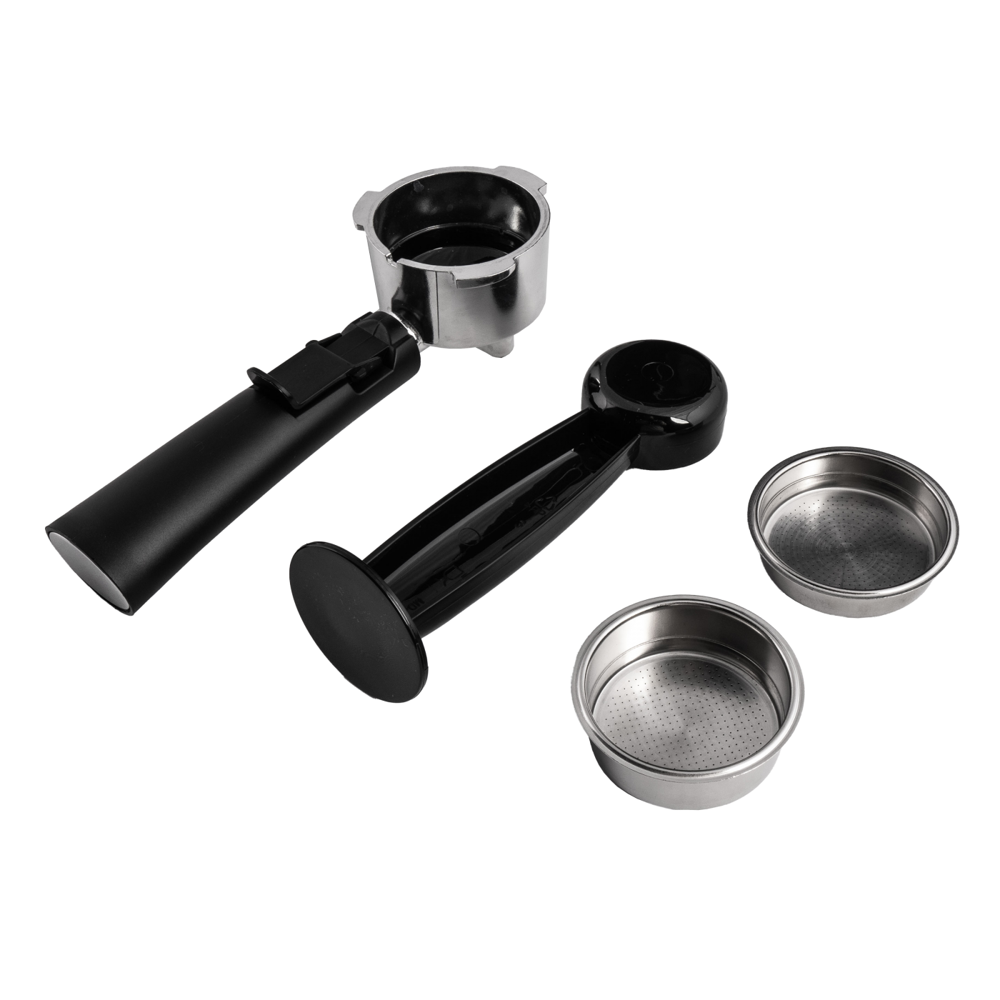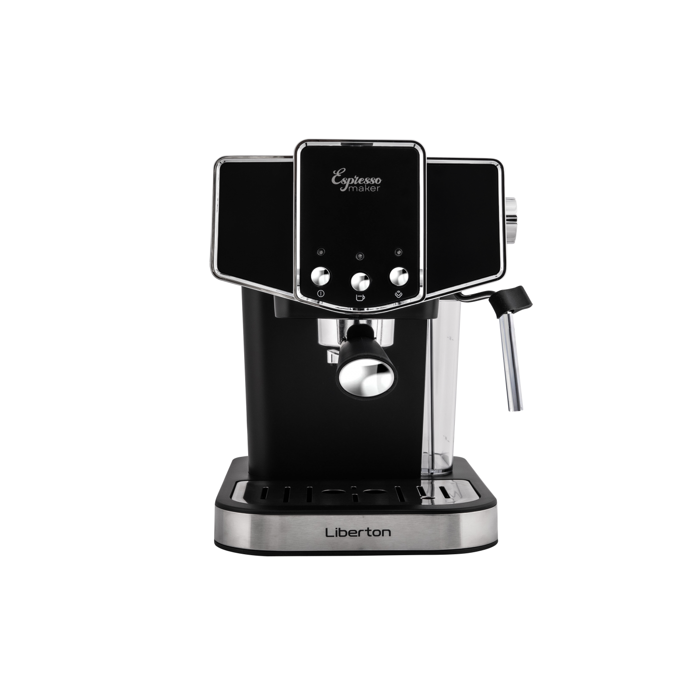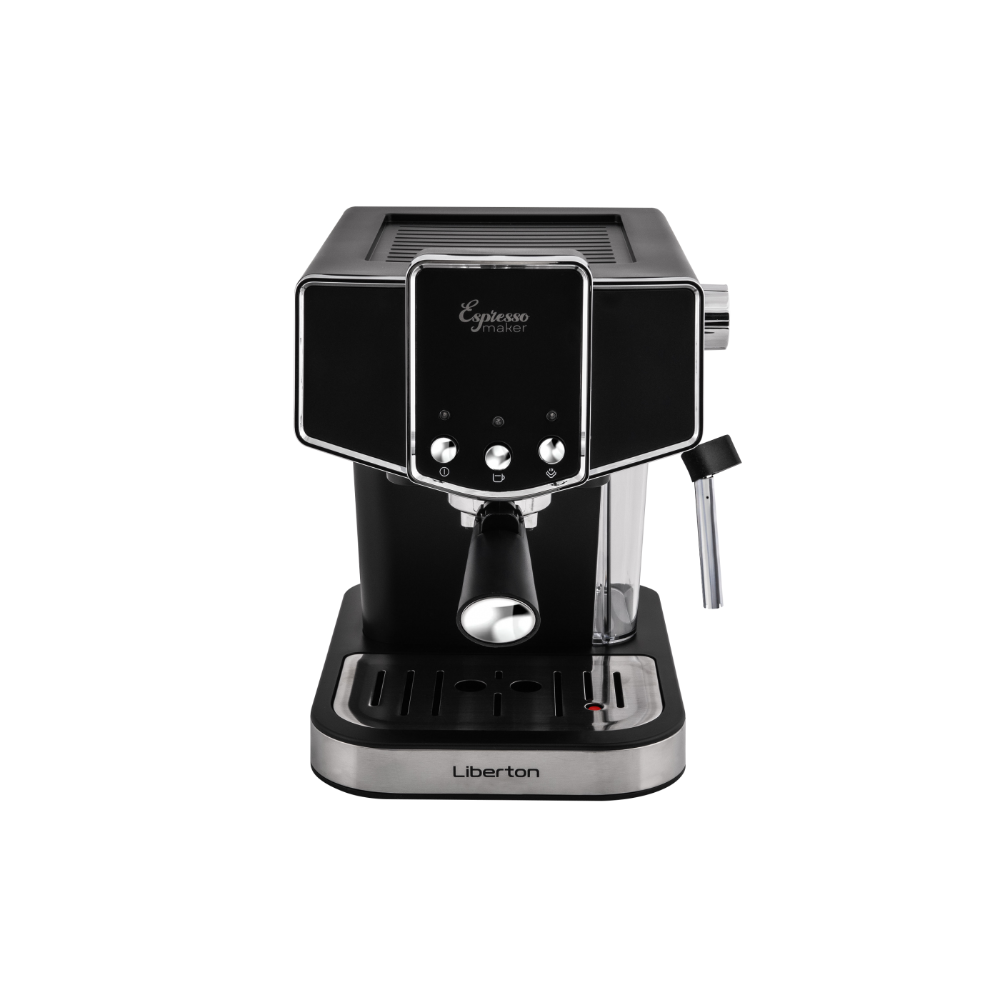 Coffee maker type: horn (espresso); Type: semi-automatic; Power: 950 W; Pressure: 15 bar; Control type: mechanical; Water tank capacity: 1.2 l; Coffee type: ground; Features: pannarello nozzle, manual cappuccino maker, adjustable steam, hot water, simultaneous preparation of two cups of coffee, removable drip tray, coffee pot heating, overheating protection, overpressure protection, power-on indicator, water level indicator, measuring spoon-tamper; Body material: plastic + stainless steel; Product size: 23,1х29,3х27,6 cm; Color: black + silver.