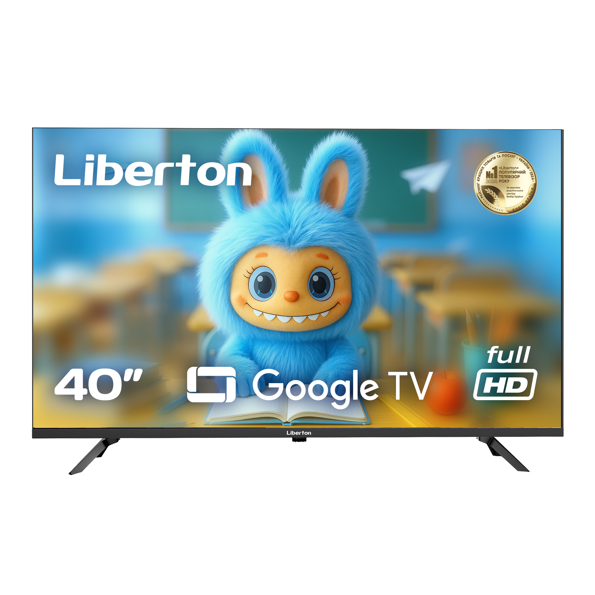 Screen size: 40" (100 cm); Design: frameless; Resolution: 1920x1080 pixels (FULL HD); Operating system: GOOGLE TV; Version: 5.0 (OFFICIAL); Technologies: HDR 10, Dolby Audio, Dolby Digital Plus; RAM: 1 GB; Internal storage: 8 GB; Tuner: DVB-T/C/T2; Viewing angle: 178°; Refresh rate: 60 Hz; Inputs: RF antenna, Ethernet (RJ45), USB, HDMI, composite A/V; Outputs: headphone jack, optical; Sound output: 16 W; Plastic center stand; VESA mount: 200x200 mm; Voice remote control; Color: Black.
